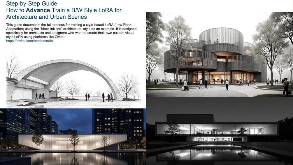 ​🎯 In this edited 2-hour workshop recording, architect June Chow will guide you through the complete online process of training and applying a style-based LoRA — even if you’re a total beginner. You’ll learn how to build and deploy a style LoRA inspired by your desired forms, and use it across various platforms to ideate, iterate, and visualize design directions with ease.
